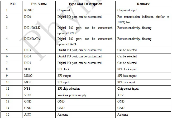 5. Antenna affect much to the communication distance, so should apply the antenna which matches module's frequency, standing-wave ratio should be small and impedance is close to 50ohm